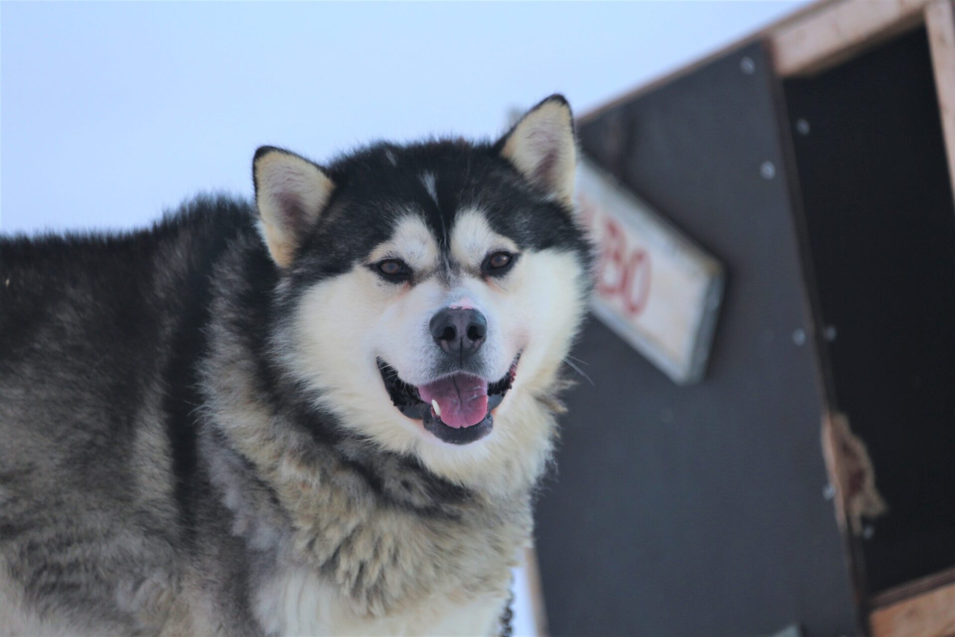 Bilbo is 45 kg of pure joy and muscles! He is 25% Greenland dog, 25% Malemut and half husky. It took a while, before he understood the art of dog sledding- but as soon as he understood what it was all about, he became our irreplacable “left wing” and Uncle Bilbo joins us, everytime we go out to train the buig puppies.